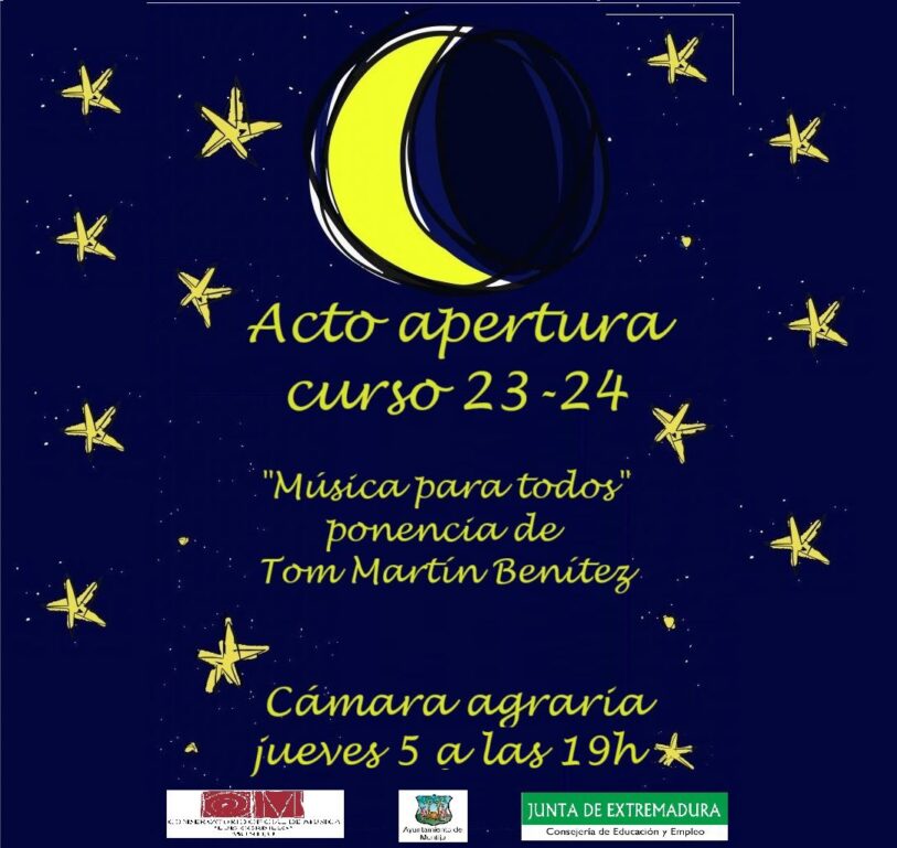 El próximo jueves, día 5, a las 19.00 h se realizará el acto de Apertura del Curso académico 23/24,  del Conservatorio Profesional de Música de Montijo en la Cámara Agraria.