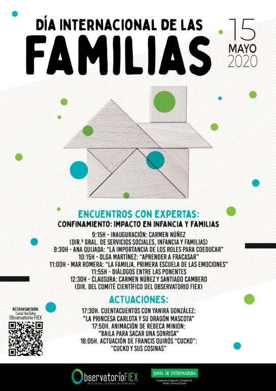 El Observatorio FIEX organiza para el próximo 15 de Mayo una serie de encuentros con expertas y actividades con motivo del Día Internacional de las Familias.