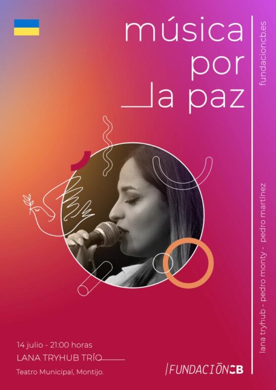 Los asistentes podrán disfrutar de la voz de Lana Tryhub acompañada al piano por el montijano Pedro “Monty” y al violín por Pedro Martinez Aguilar que interpretarán temas cantados en ucraniano, inglés y español.