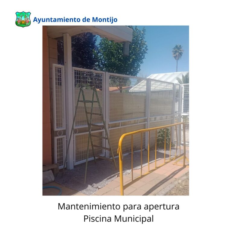 -Labores de mantenimiento para apertura de piscina municipal, mantenimiento y tratamiento para insectos en césped, obra en instalaciones del bar, dotación de nuevo mobiliario en bar, mantenimiento de rejas metálicas y puertas de exteriores, rejunteado de vaso de piscina grande …