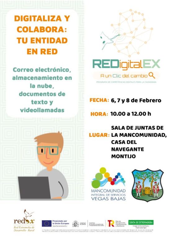 Redigitalex se encuadra dentro del marco del Plan Nacional de Competencias Digitales (PNCD), concretamente, en el componente 19.I1, que está incluido dentro del Plan de Recuperación, Transformación y Resiliencia, financiado por la Unión Europea Next Generation EU, con cargo a los fondos procedentes dentro del “Mecanismo de Recuperación y Resiliencia», del Ministerio de Asuntos Económicos y Transformación Digital a través de la Consejería de Economía, Empleo y Transformación Digital de la Junta de Extremadura y gestionado por la Red Extremeña de Desarrollo Rural.