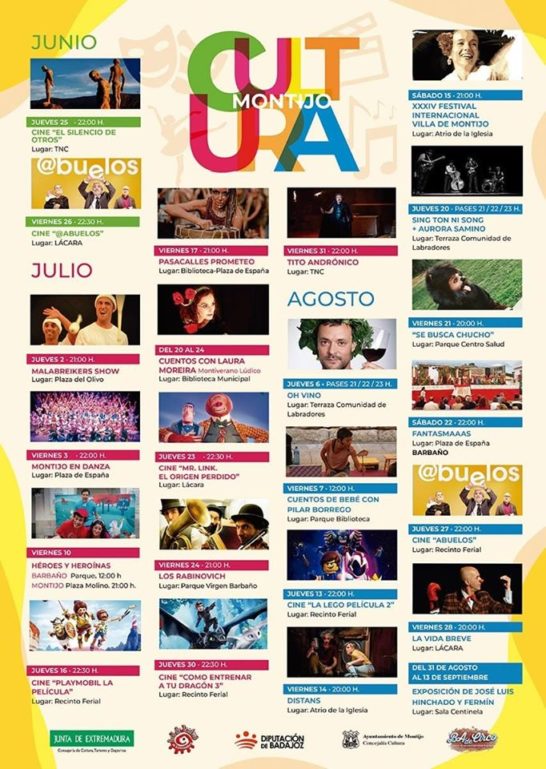 El Ayuntamiento de Montijo ha hecho pública la programación cultural para los próximos meses de julio y agosto.