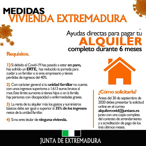 Los requisitos para ser beneficiarios de las ayudas de este programa son: ser persona física mayor de edad y poseer nacionalidad española o tener residencia legal en España, hallarse al corriente de sus obligaciones tributarias con la Hacienda Estatal y la Hacienda de la Comunidad Autónoma, así como de sus obligaciones con la Administración de la Seguridad Social, no hallarse incursos en ninguna de las circunstancias previstas en el artículo 13 de la Ley 38/2003, de 17 de noviembre, General de Subvenciones, ni haber sido objeto, por incumplimiento o causa imputable a los mismos, de un procedimiento de revocación de ayudas por parte de la Comunidad Autónoma de Extremadura, de entre las contempladas en los planes estatales de viviendas, que a la fecha de entrada en vigor del estado de alarma (14 de marzo de 2020), sea titular o cotitular, en calidad de arrendatarias, de un contrato de arrendamiento de una vivienda en la comunidad autónoma de Extremadura, que la unidad familiar se halle en situación de vulnerabilidad económica y social sobrevenida, que la vivienda arrendada constituya la residencia habitual y permanente de la unidad familiar, y sea destinada a este fin durante todo el periodo de alquiler subvencionado.