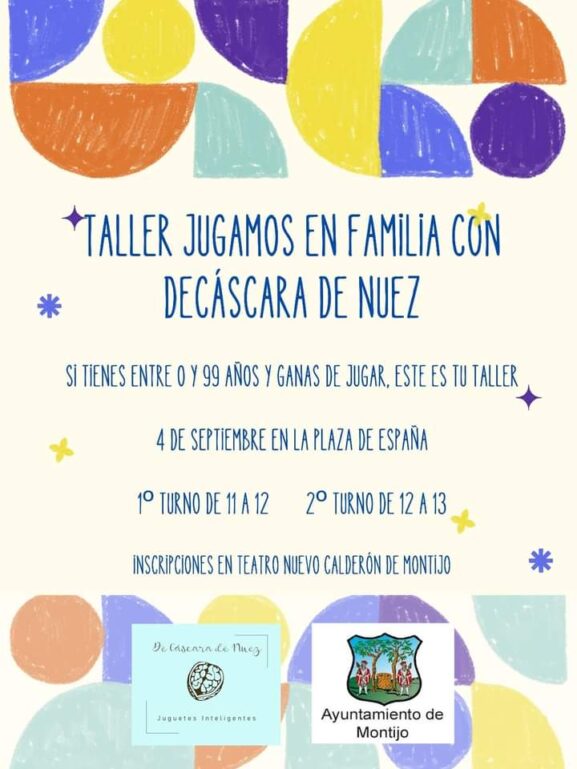 Durante la mañana de hoy, lunes 4 de septiembre, los niños podrán pasarlo en grande participando en el taller «Jugamos en familia con Cáscara de Nuez» en la Plaza de España.