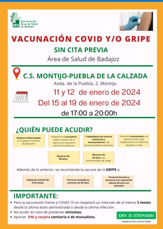 Inicio » VACUNACIONES EN EL CENTRO DE SALUD DE MONTIJO-PUEBLA DE LA CALZADA